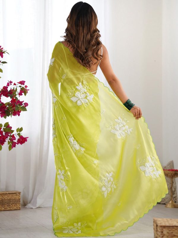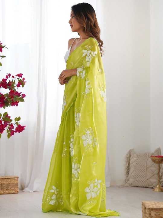 Lime green and white saree